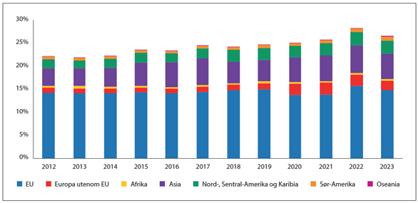 ikke-europeiske land de siste årene, utgjør EU-landene fortsatt Norges suverent viktigste