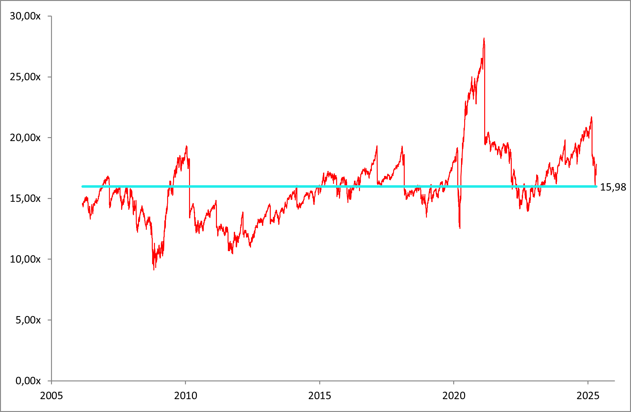 Til tross for økt geopolitisk uro og svekket investortillit som følge av handelskonfliktene, har aksjemarkedet faktisk blitt lavere priset når man ser på fremoverskuende Price/Earnings (P/E) basert på forventet resultat de neste 12 månedene. Dette skyldes i stor grad to forhold: For det første har aksjekursene falt som følge av økt usikkerhet og justerte inntjeningsforventninger. For det andre har en viktig teknisk faktor spilt inn – nemlig at selskaper nå er ferdige med å rapportere fjerde kvartal 2024, noe som betyr at estimatperioden for forventet resultat har rullet videre fra Q4 2024–Q4 2025 til Q1 2025–Q1 2026. Siden første kvartal 2026 i mange tilfeller har høyere forventet inntjening enn første kvartal 2025, trekker dette gjennomsnittlig forventet resultat opp. Dermed ser P/E-forholdet lavere ut, selv om de fundamentale forholdene ikke nødvendigvis har bedret seg. Men hvis analytikerne nedjusterer sine estimater ytterligere, vil P/E-multiplene kunne øke igjen.