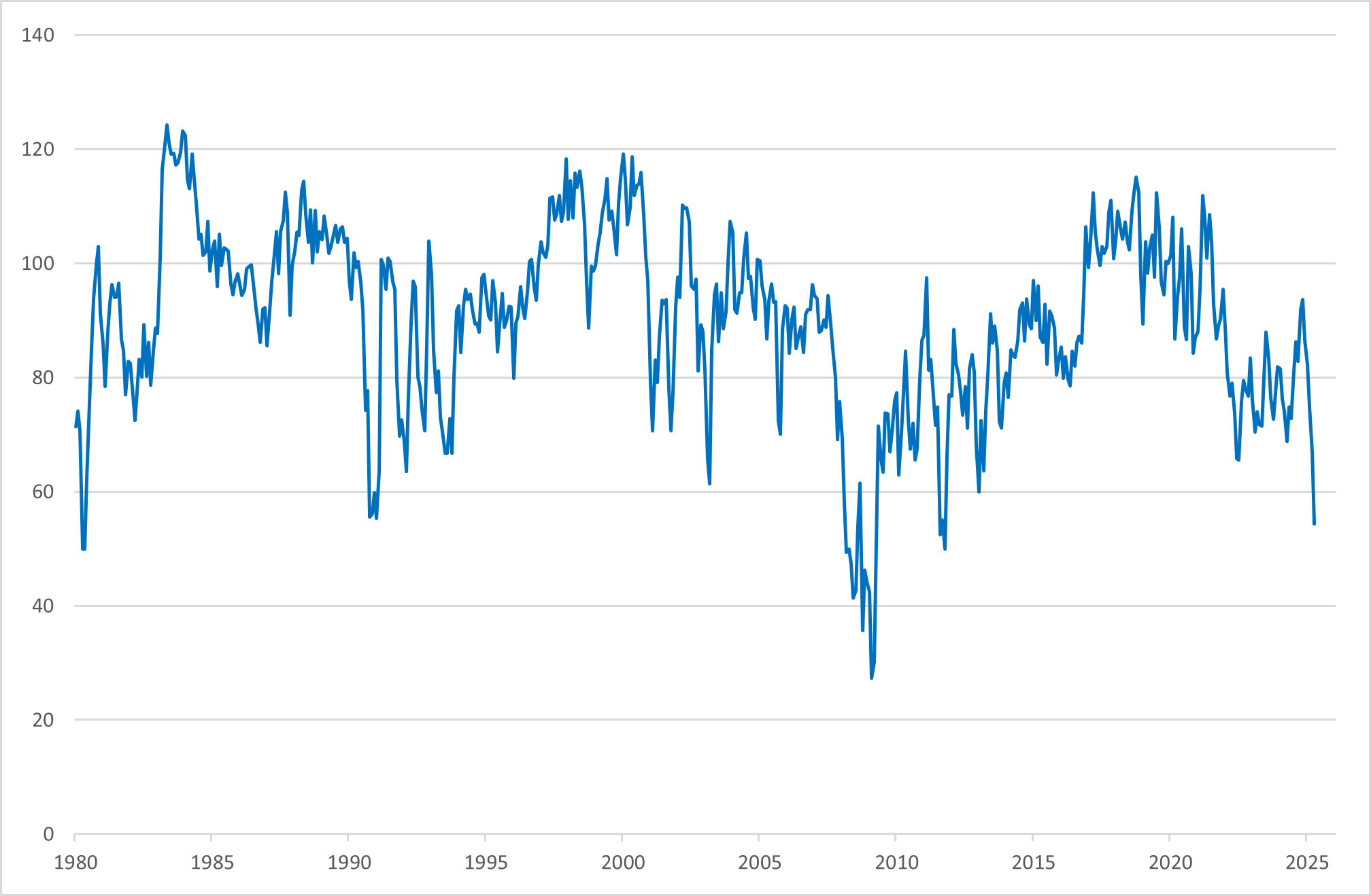 USA, på sin side, har mange selskaper, spesielt innen teknologi, bilindustri og landbruk, som er avhengige av både kinesiske markeder og leverandørkjeder. Økte produksjonskostnader og svekket etterspørsel i Kina truer nå inntjeningen til amerikanske selskaper. Amerikanske forbrukere vil også merke konsekvensene gjennom høyere priser på importvarer, noe som kan bidra til inflasjonspress og svekket kjøpekraft. Det er allerede flere tegn på at handelskonflikten begynner å få effekt på amerikansk økonomi. US Conference Board Consumer Confidence Expectations er en delindeks i Consumer Confidence Index (CCI), som utgis av The Conference Board, en uavhengig forskningsorganisasjon i USA. Denne delindeksen måler forbrukernes forventninger til økonomien de neste 6 månedene.