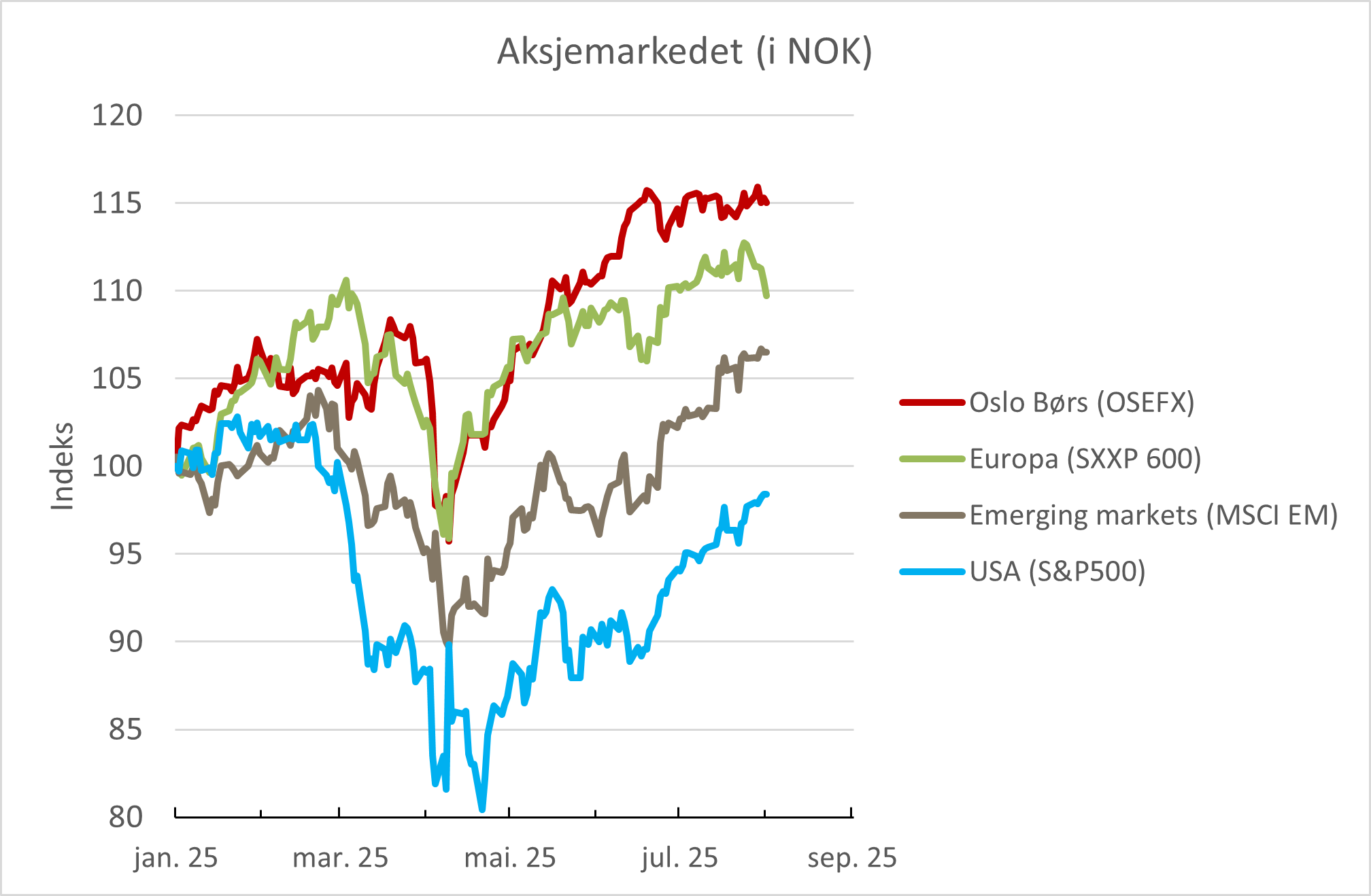 Figur 1: Aksjemarkedet så langt i år i norske kroner
