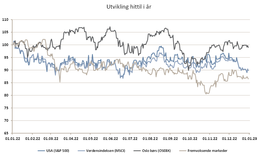 Året 2022 har i stor grad vært preget av krigen i Ukraina og de menneskelige lidelsene som har oppstått på grunn av Russlands krigføring. Men året har også vært påvirket av prisstigning, renteøkning og energikrise. Finansielt ble 2022 et skuffende år, selv om vi i Norge ble «reddet» av en svak krone.
