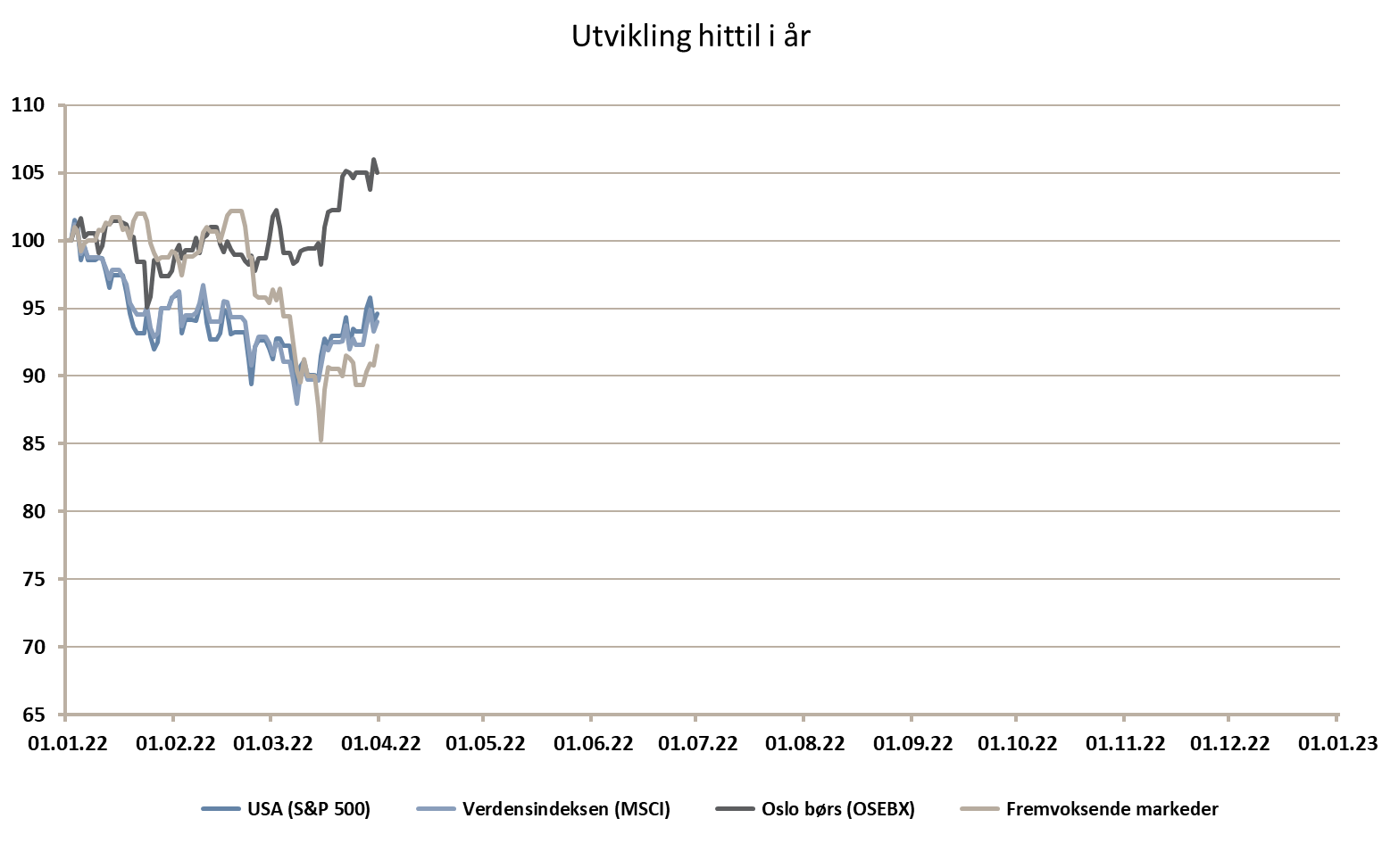 I vår markedskommentar for september 2021 skrev vi om TINA (There Is No Alternative), begrepet som betyr at det ikke finnes alternativer til aksjer. Sentralbankene senket styringsrenten og kjøpte obligasjoner i markedet som presset prisene opp og rentene ned. Nå skal disse tiltakene reverseres. Det kan bety at obligasjoner igjen kan bli en attraktiv aktivaklasse. På slutten av 2020 ga globale lavrisiko-obligasjoner en avkastning til forfall på 0,83% (det vil si dersom en eier obligasjonen til forfall og det er ingen fare for mislighold). I dag er denne avkastningen 2,21%. For globale høyrente-obligasjoner var avkastning til forfall 4,5% i desember 2020, mens den i dag er 6,7%. Mange mener at økte renter er negativt for obligasjoner, men det gjelder primært obligasjoner med fast rente. Obligasjoner med flytende rente vil få en høyere rente til forfall når markedsrenten stiger.
