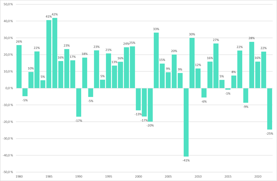 Det er ikke mye positivt å lese i finanspressen for tiden. Krig i Europa, energimangel, gassledninger som blir sprengt, høy inflasjon, renteøkning, lavere vekst, klimakrise og politisk ustabilitet. Da er det naturlig at man blir nervøs for sine aksjeinvesteringer. Det er fristende å tenke at det kan være lurt å selge nå og heller kjøpe seg inn i markedet på et senere tidspunkt. Impulsive beslutninger når markedet faller har dessverre en dårlig avkastningshistorikk.