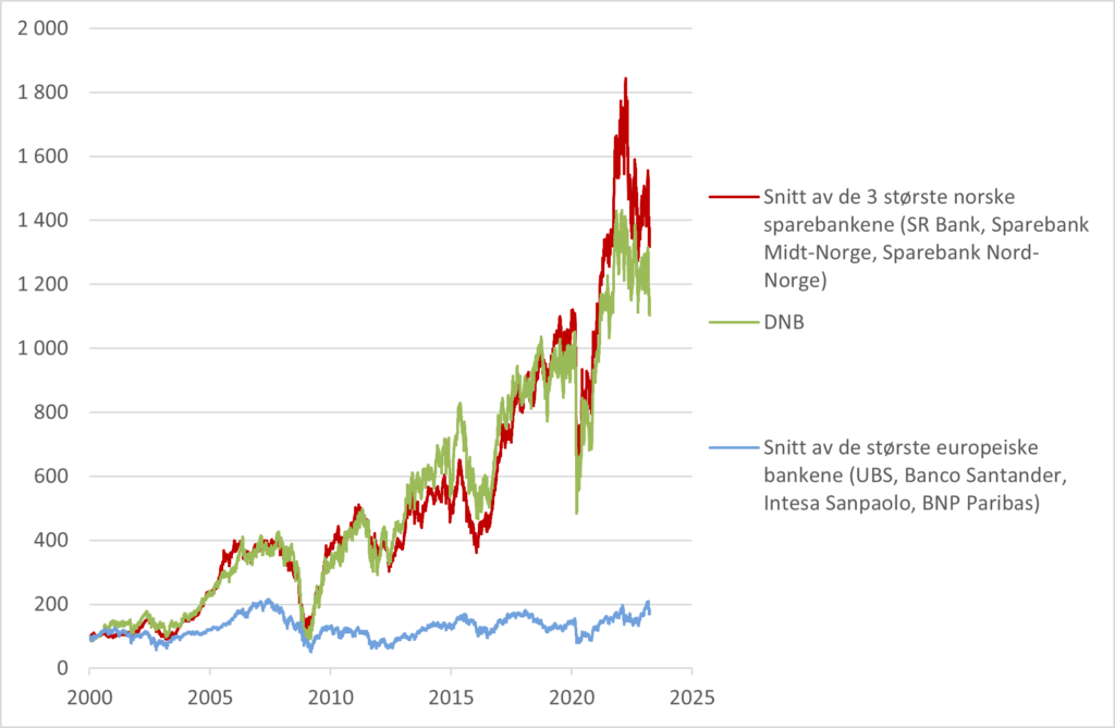 Som investor har du tjent bra på å være investert i norske banker. De siste 20 årene har sparebankene gitt aksjonærene en årlig avkastning på 13,8%, DNB har gitt 11,9%, mens Europeiske banker har kun gitt en årlig avkastning på 1,6% i samme periode.