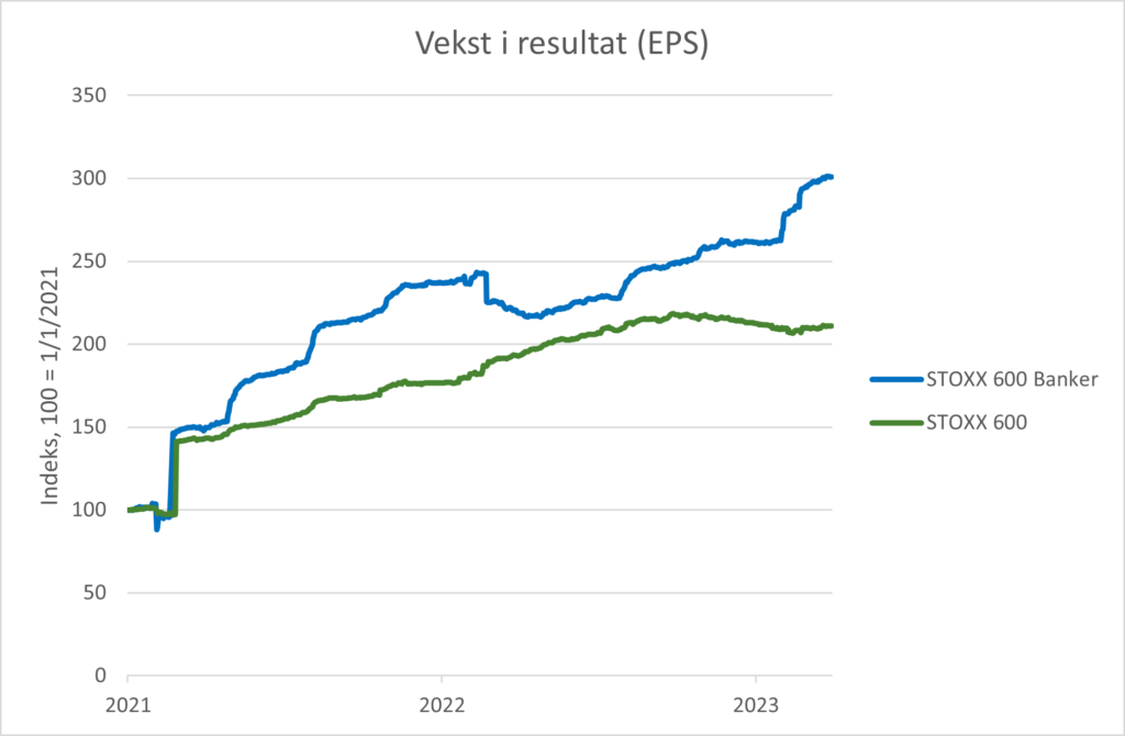 Figur 3 – Vekst i inntjening per aksje (EPS) for europeiske banker og markedet generelt