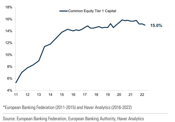 Europeiske banker er mer solide i dag enn de var før finanskrisen og myndighetene har innført strengere regulering for å unngå at en slik situasjon oppstår igjen. Konkursen i Silicon Valley var et resultat av for høy renterisiko og tvilsom regnskapsføring og det er ikke sannsynlig at dette er et generelt problem for banknæringen. Kjernekapitaldekningen (egenkapital i prosent av de risikovektede eiendelene) har steget fra rundt 5% i 2011 til 15% i dag.
