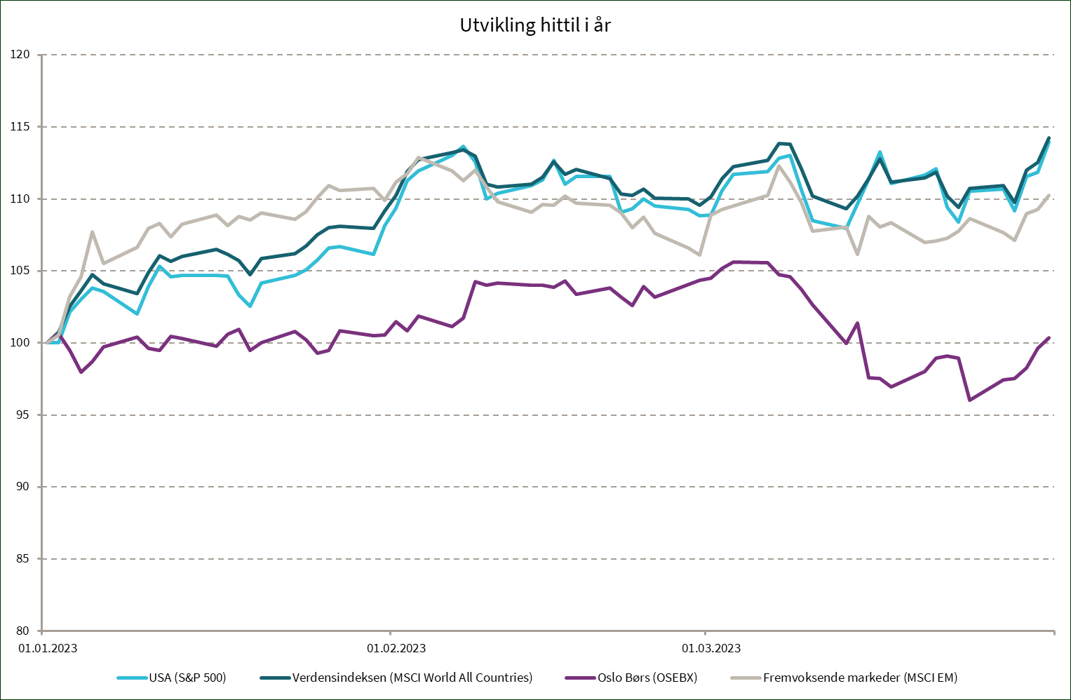 Siste tids uro i aksjemarkedet skyldes i stor grad banker som har fått problemer på grunn av økte renter, dårlig styring og store uttak av innskudd. Det hele startet med at den amerikanske banken Silicon Valley Bank gikk konkurs. Banken var den 16. største banken i USA og spesialiserte seg på å finansiere venture/start-up-selskaper innen teknologi. Banken baserte mye av finansieringen på innskudd og hadde en vekst i innskudd på 221% fra slutten av 2019 til begynnelsen av 2022. Mye av denne kapitalen ble investert i obligasjoner med fastrente. Da kunder begynte å trekke ut disse innskuddene måtte banken selge obligasjonsporteføljen for å skaffe kapital. Denne porteføljen var bokført til kostpris i regnskapet, mens markedsverdien var betydelig lavere. Tapet på porteføljen visket ut egenkapitalen og banken var konkurs. Få dager etter ble Signature Bank i New York stengt av de amerikanske myndighetene.