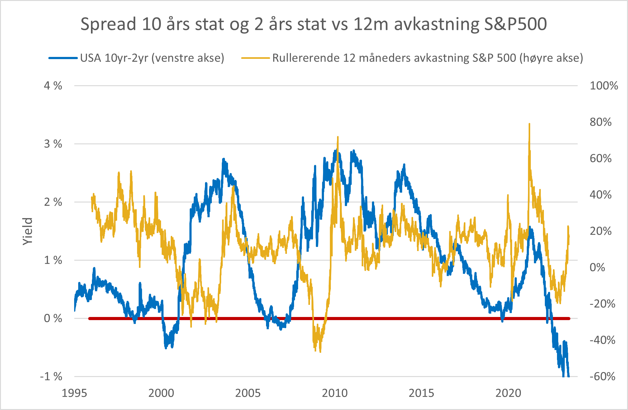 Figur 2 – invers rentekurve og avkastning aksjemarkedet
