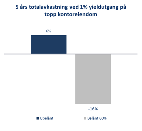 Prisene på næringseiendom er utvilsomt høye, samtidig som man ser en nedgang i etterspørselen etter lokaler. Særlig gjelder dette sentralt beliggende kontorlokaler. Leieinntektene vil nå stort sett være akkurat nok til å dekke renter, litt ekstra vedlikehold og administrasjonskostnader. Det blir lite butikk i dette utover en ren oppbevaring av pengene.