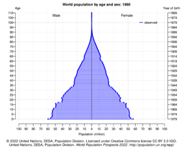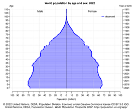 Demografi er befolkningslære eller befolkningsbeskrivelse. En befolkningspyramide er en figur som viser hvor mange mennesker det finnes, kategorisert etter alder og kjønn, innen et bestemt område. Under har vi vist to slike befolkningspyramider for hele verden, en fra 1980 og en fra 2022: