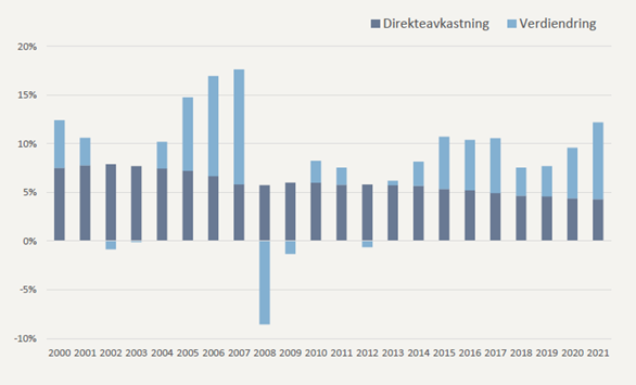 Fjoråret var et lønnsomt år for de som hadde investert i næringseiendom. I følge MSCI Real Estate var 2021 det beste året siden 2007 for norsk næringseiendom. En stor del av avkastningen skyldtes økte verdier.