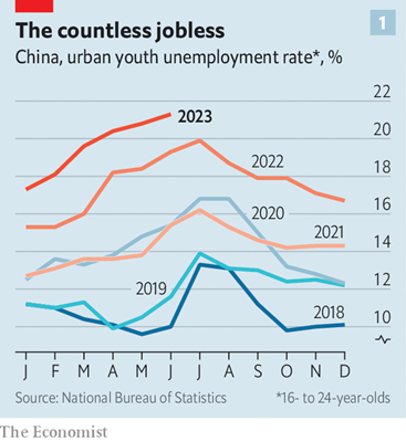 Unge kinesere i dag har vokst opp i en periode med sterk økonomisk vekst og økt levestandard. I det siste har utsiktene for disse unge endret seg. Ungdomsledigheten i Kina har steget kraftig og er nå over 21% i aldersgruppen 16-24 år. Det er et så høyt tall at myndighetene har besluttet å stoppe publisering av arbeidsledighetstall for unge. Høy arbeidsledighet skaper risiko for uro blant befolkningen, noe vi opplevde i 1989 da studenter demonstrerte på Den himmelske freds plass i Beijing.