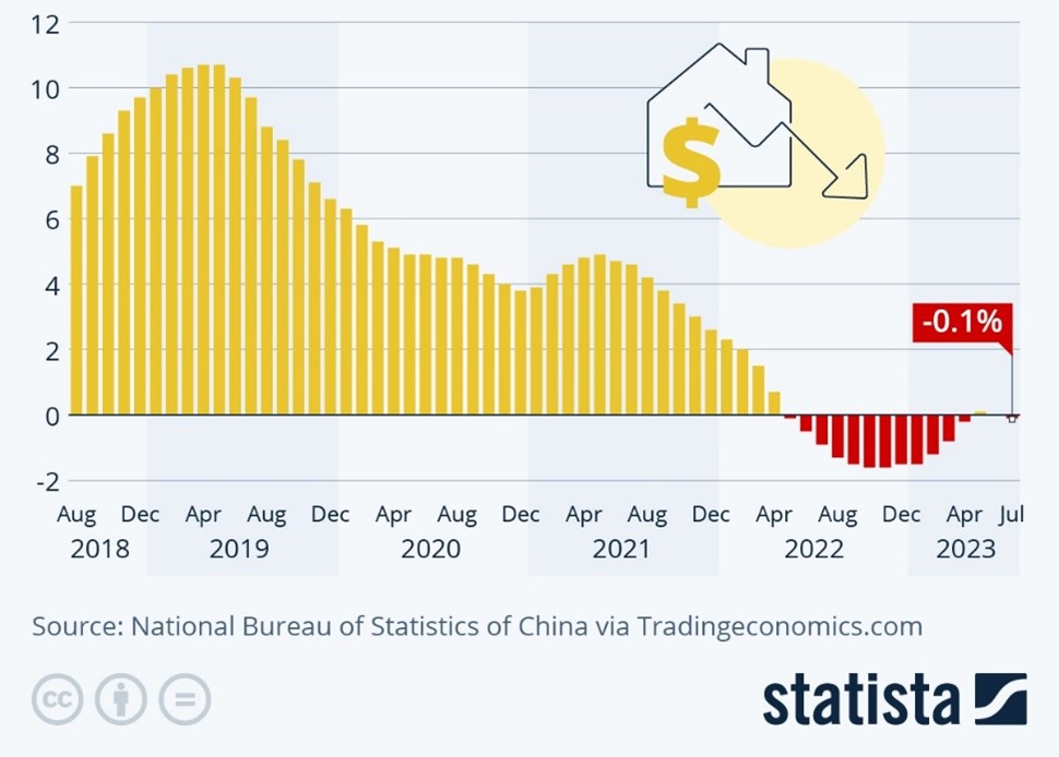 Prisene på eiendommer i Kinas 100 største byer har falt med 14 % sammenlignet med toppen i 2021. I de mindre byene, der prisinformasjonen fortsatt er mangelfull, er situasjonen sannsynligvis verre.