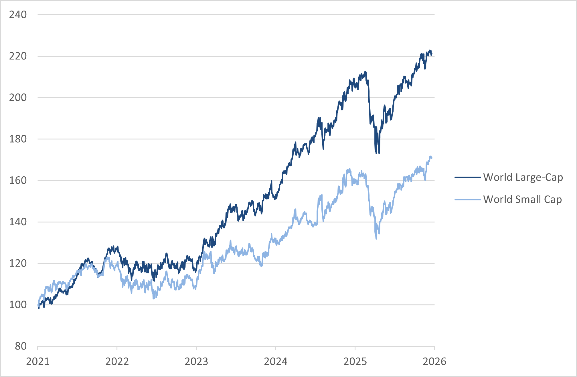 Etter en lang periode der store, globale selskaper har dominert avkastningen i aksjemarkedene, ser vi økende tegn til at mindre og mellomstore selskaper kan få sitt momentum tilbake i 2026. Høy konsentrasjon i indeksene, kombinert med mer normaliserte renter, kan bidra til en rotasjon mot selskaper med lavere verdsettelse og større innenlandsk eksponering. Små selskaper har ofte vært hardere rammet av økte finansieringskostnader og usikkerhet, men dette betyr også at forventningene er lave. Dersom økonomien utvikler seg mer stabilt enn fryktet, kan disse selskapene levere relativt sterk avkastning. For investorer representerer dette en mulighet til å øke diversifiseringen og utnytte feilprising i mindre analyserte selskaper.