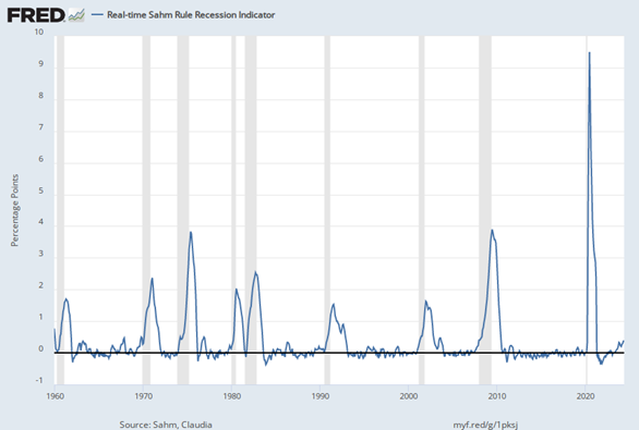 En viktig indikator å følge i denne sammenhengen er Sahm’s regel, oppkalt etter økonom Claudia Sahm. Sahm’s regel sier at hvis arbeidsledigheten har steget med 0,5 prosentpoeng fra sitt laveste nivå i løpet av de siste 12 månedene, er det et sterkt signal om at en resesjon er nært forestående. Historiske data har vist at denne regelen har vært en pålitelig indikator for resesjon i USA, som for eksempel i 2001 og 2008.