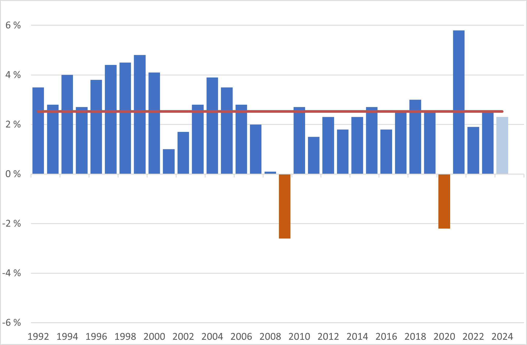 Figur 1 – Vekst i amerikansk økonomi per år (prosentvis endring i brutto nasjonalprodukt)