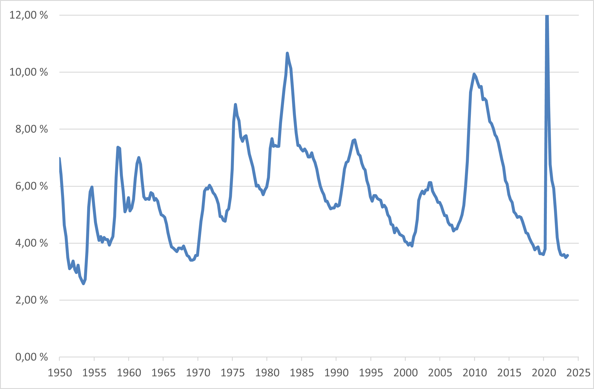 Figur 4 – Lønnsveksten i USA er høyere enn prisveksten
