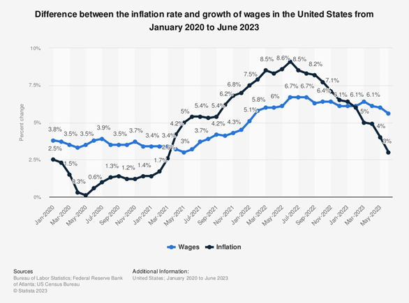 Den lave arbeidsledigheten har ført til økte lønninger i USA, men amerikanerne har de siste årene ikke fått glede av lønnsøkningen på grunn av den kraftige økningen i prisene. Med fallende priser er nå lønnsveksten for første gang på to år høyere enn prisveksten.