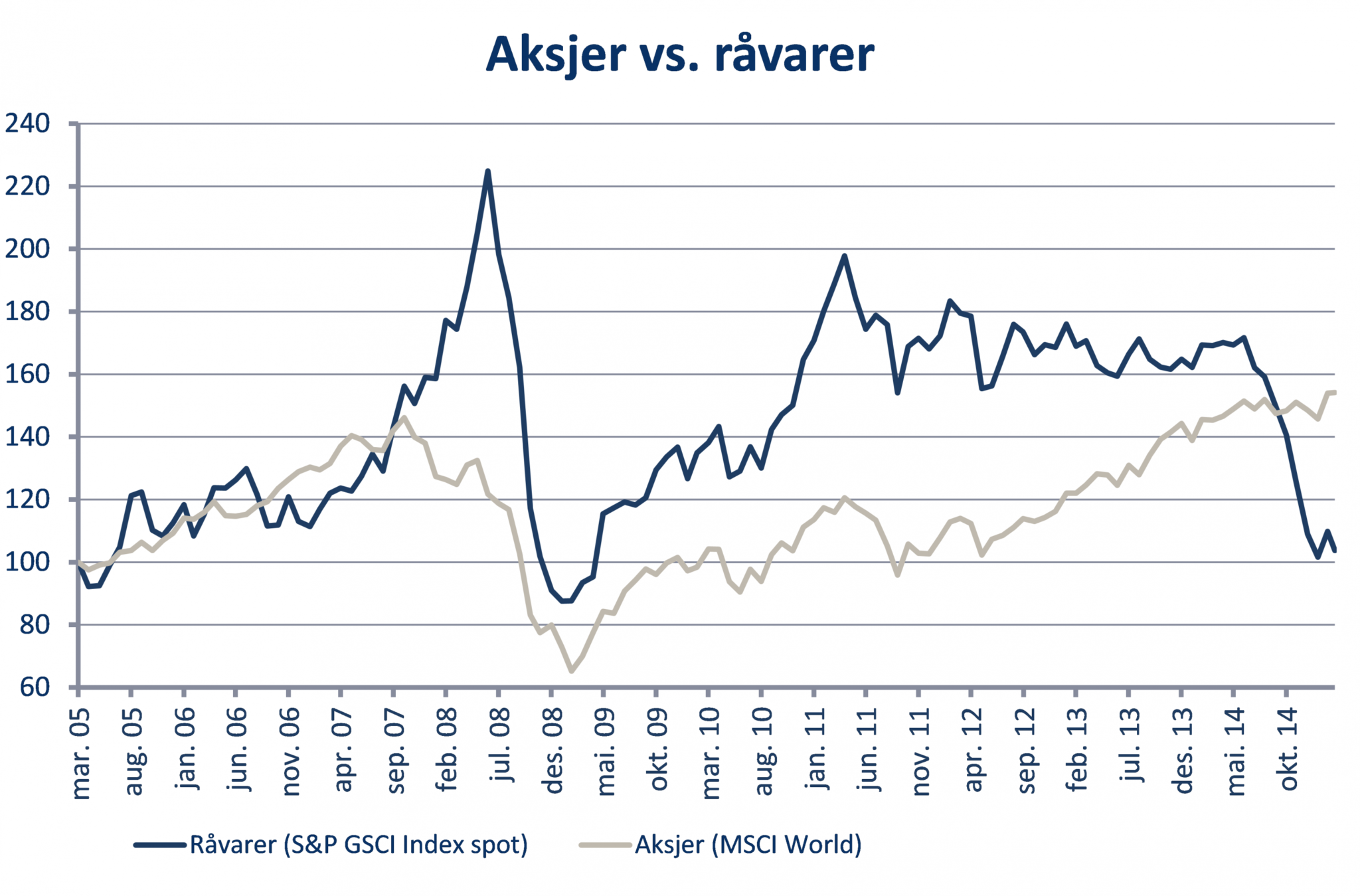 Siden 2011 har prisen på så godt som alle større råvarer vært på nedadgående kurs. Faktumet at råvareprisene stort sett har falt sammenhengende i 4 år, samtidig som man har hatt et oppgangsmarked i aksjer, gjør at de fleste investeringer med et tilsnitt av råvarer, nå er noe av det mest upopulære man kan finne på et globalt nivå. Opinionen har nå svingt til den andre ytterligheten, hvor alle «vet» at aksjer vil være et bedre sted å være enn råvarer.