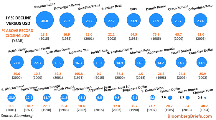 Valutabevegelser, spesielt styrkingen av amerikanske dollar, har vært det førende temaet for alle finansmarkeder de siste månedene. Det kan herske liten tvil om at vi nå er midt inne i en valutakrig. Årsaken til det er at de fleste land i verden bygde opp for mye gjeld i perioden fra årtusenskiftet. Den gang hadde man langt høyere vekstforventninger og gjelden virket ikke så problematisk. Forskning fra etter finanskrisen viser imidlertid at normalveksten blir lavere dersom total gjeld når et visst nivå. Resultatet er at store deler av verden, akkurat nå spesielt Europa, sliter med lav vekst og fall i prisnivået.